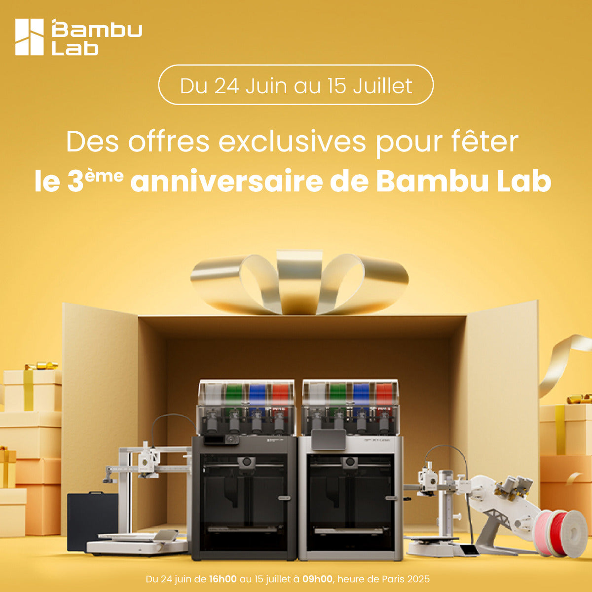 Select an Image Chez Atome3D, on adore les belles machines, la précision… et les bons plans ! Alors forcément, quand Bambu Lab célèbre ses 3 ans avec des réductions jusqu’à -40%, on ne pouvait pas passer à côté. 📅 Du 24 juin au 15 juillet 2025, profitez d’une offre exclusive... Select an Image Chez Atome3D, on adore les belles machines, la précision… et les bons plans ! Alors forcément, quand Bambu Lab célèbre ses 3 ans avec des réductions jusqu’à -40%, on ne pouvait pas passer à côté. 📅 Du 24 juin au 15 juillet 2025, profitez d’une offre exclusive...