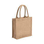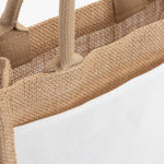 Sac de shopping en jute, idéal pour une impression par sublimation. L'impression se fait sur un insert en lin blanc.